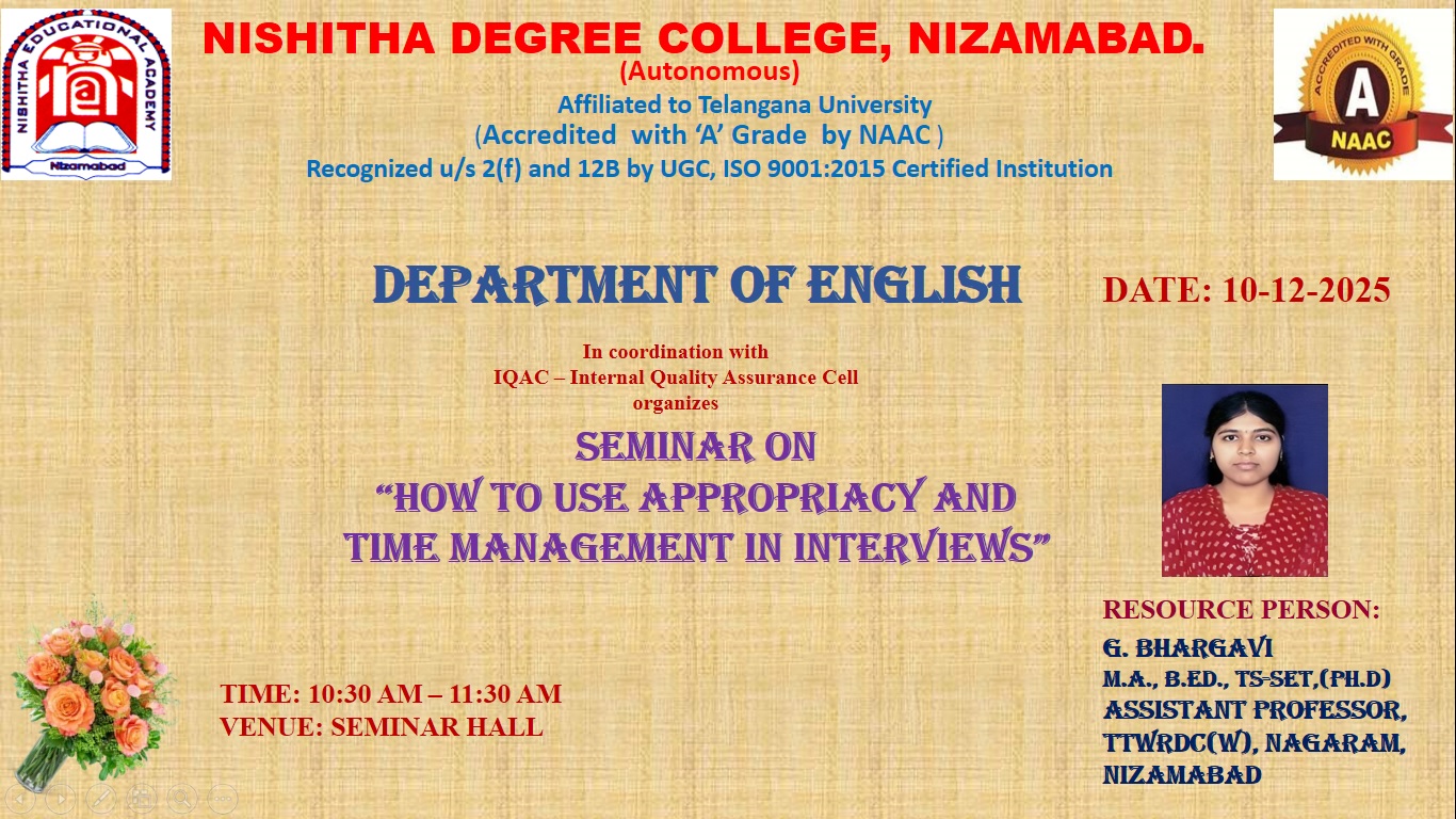 Seminar on "How to use Appropriacy and Time Management in Interviews" by Department of English